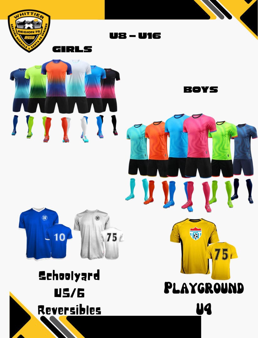 Playground Division U4 will receive a jersey and socks. Parents responsible for short *NEW players only