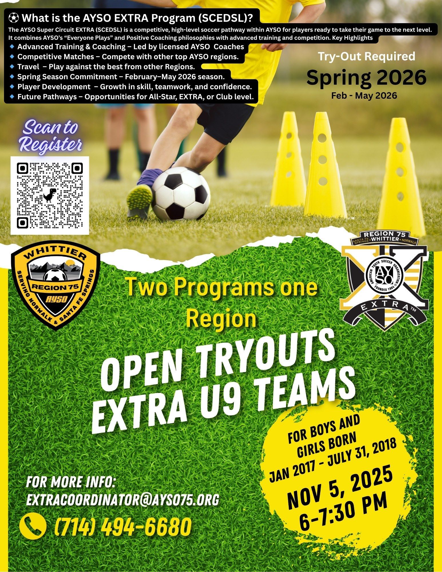 Nota Importante para Familias EXTRA Actuales: Si su jugador(a) ya forma parte de un equipo EXTRA establecido,