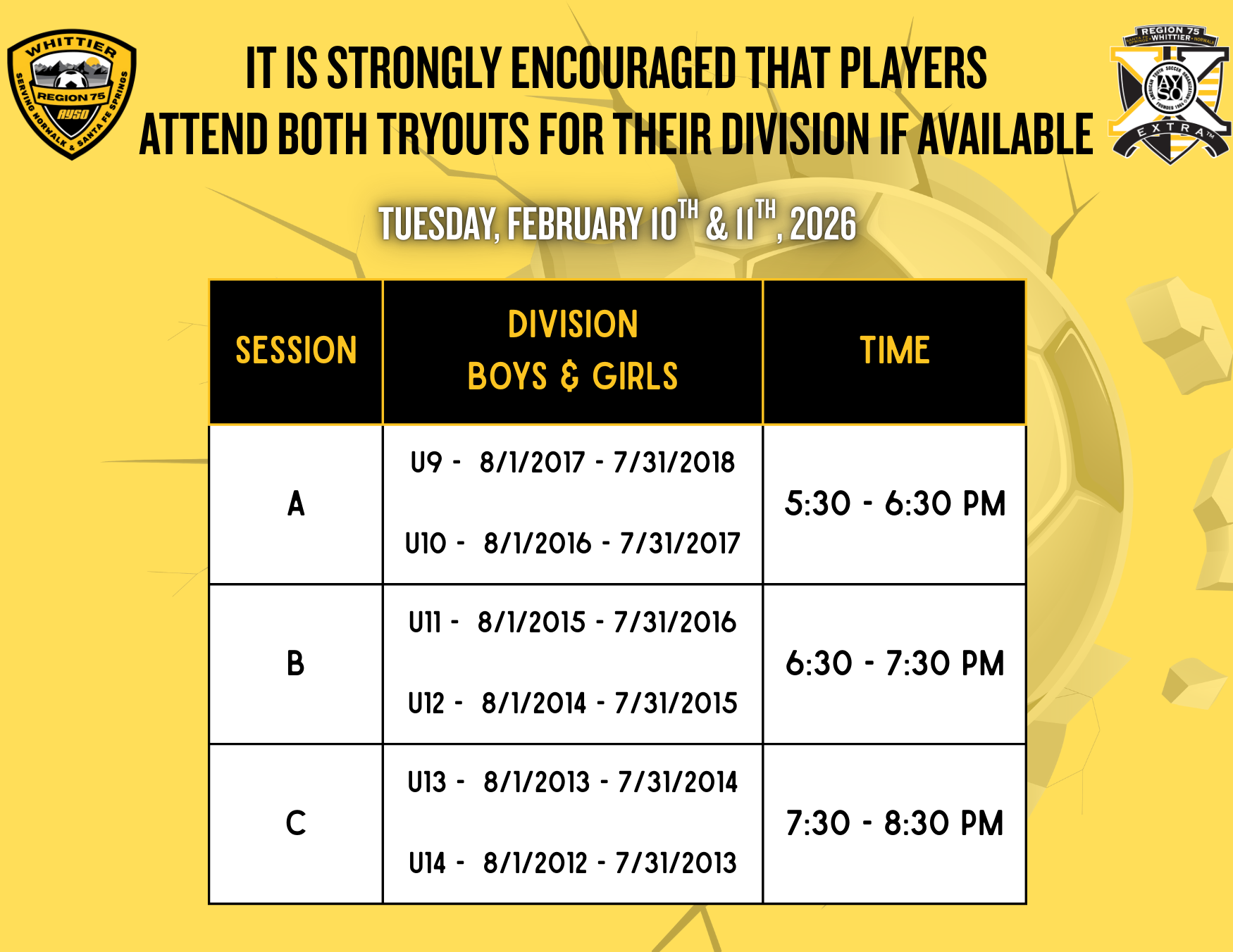 EXTRA is a competitive, game-circuit program that offers players a higher-level opportunity to refine their skills in a more competitive, tryout based environment. Players must register in the Core program to be eligible for tryouts.